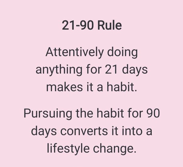 It takes 21 days to build a habit. It takes 90 days of that habit to build a lifestyle